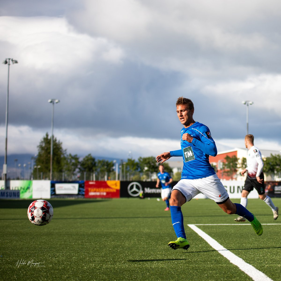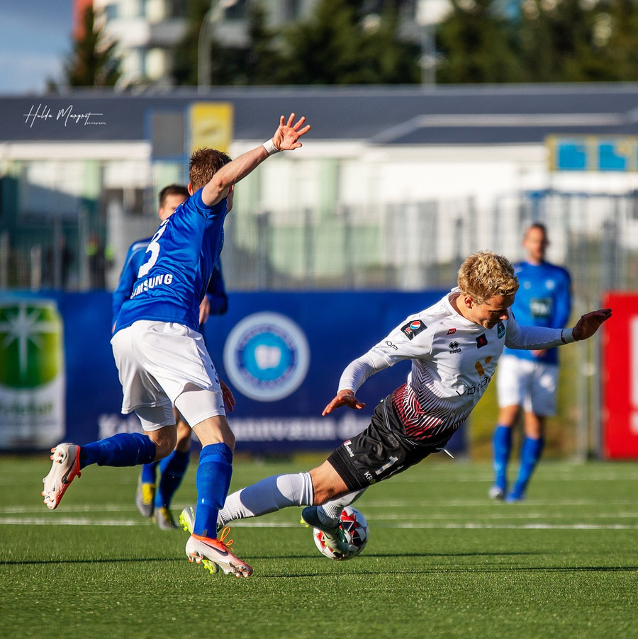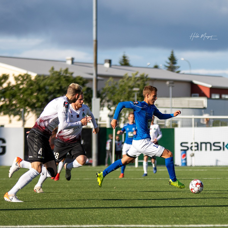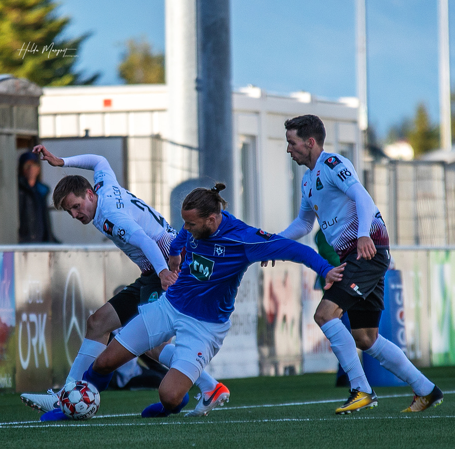 Jósef fer á fleygiferð hérna en keyrir inn í Viktor og missir boltann, Ævar var aleinn vinstra megin við hann og er skiljanlega ekki sáttur með að fá ekki boltann.