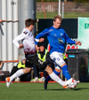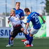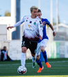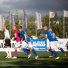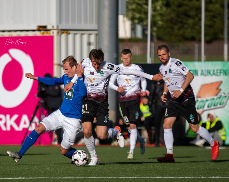 Ævar með stungu inná Sölva sem er aleinn en hann nær ekki að halda boltanum inná.