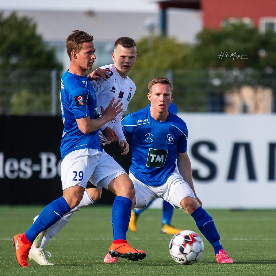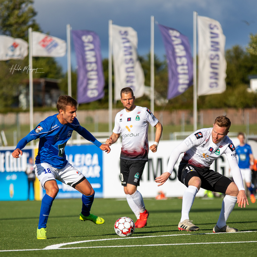 Höskuldur með laglega sendingu inná teiginn sem Mikkelsen nær en Brynjar Gauti með frábæra tæklingu þegar Mikkelsen fór í skotið og bjargaði vel.