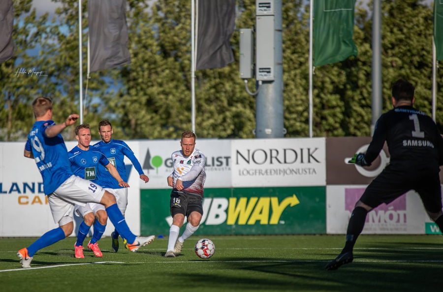 Mikkelsen verið tæpur hérna í seinni hálfleik og kemur útaf hér, ekki alveg heill heilsu. Brynjólfur Balotelli kemur inná í hans stað.