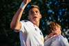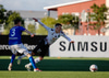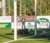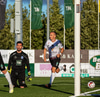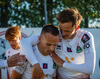 Skemmtilegt hjá Mikkelsen hérna, ætlar að hlaða svoleiðis í skotið fyrir utan teig en slær algjört vindhögg. Hittir ekki boltann og flýgur á hausinn!