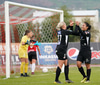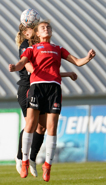 Hárfínt bolti á kollinn á Örnu Sif úr aukaspyrnunni en hún nær ekki að stýra honum á markið.