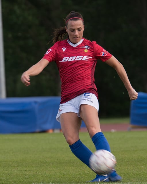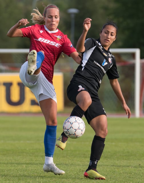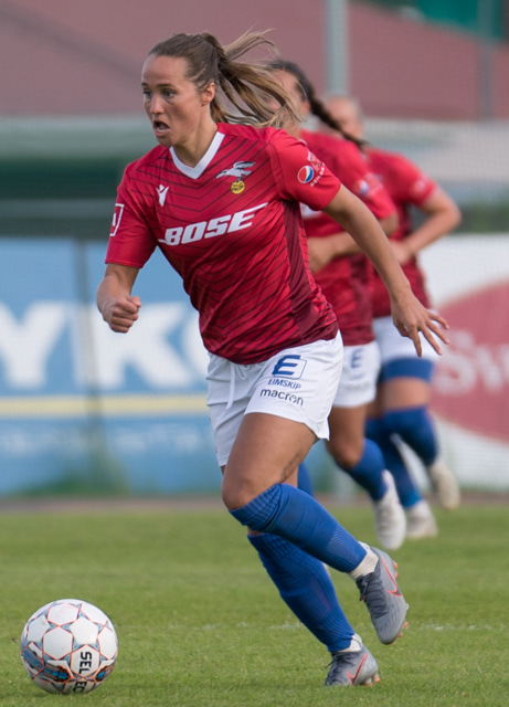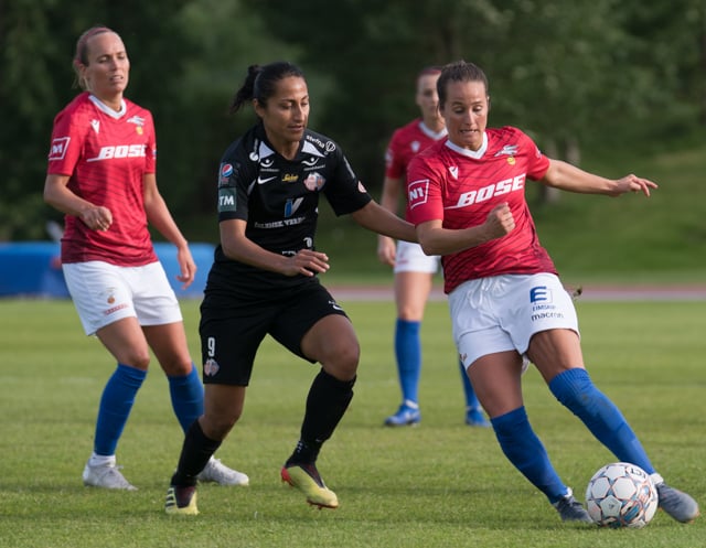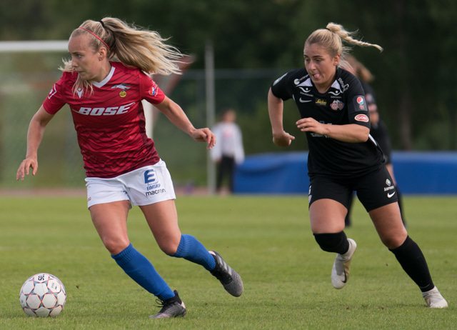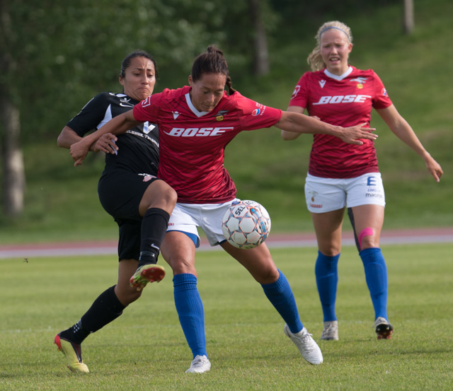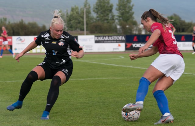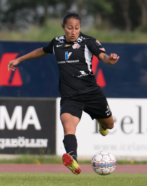 Fanndís með fínan sprett hérna inn af kantinum en skot hennar lengst utan af velli er langt framhjá.