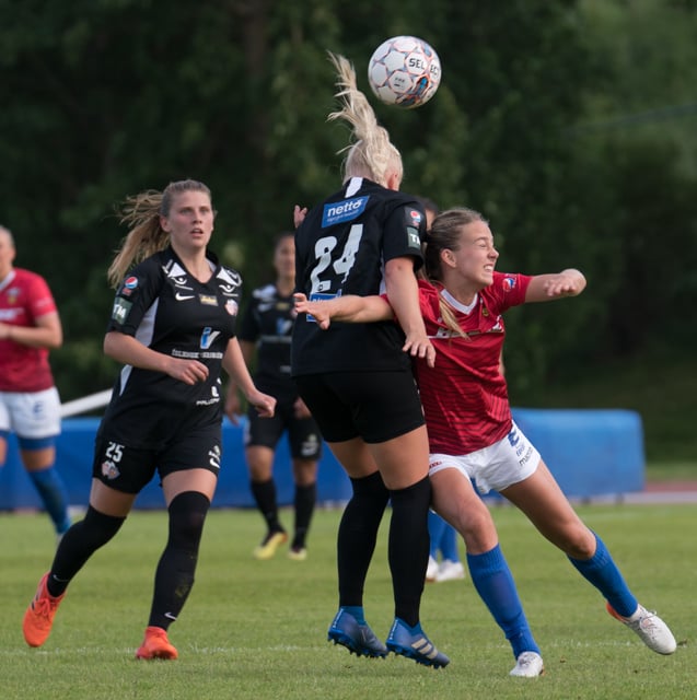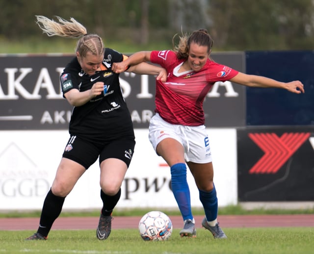 Elín Metta klobbar hér Örnu Sif rétt fyrir utan teig eftir smá klafs og Fanndís er fljót að átta sig og hamrar boltanum í samskeytin.