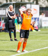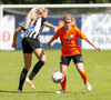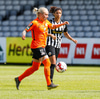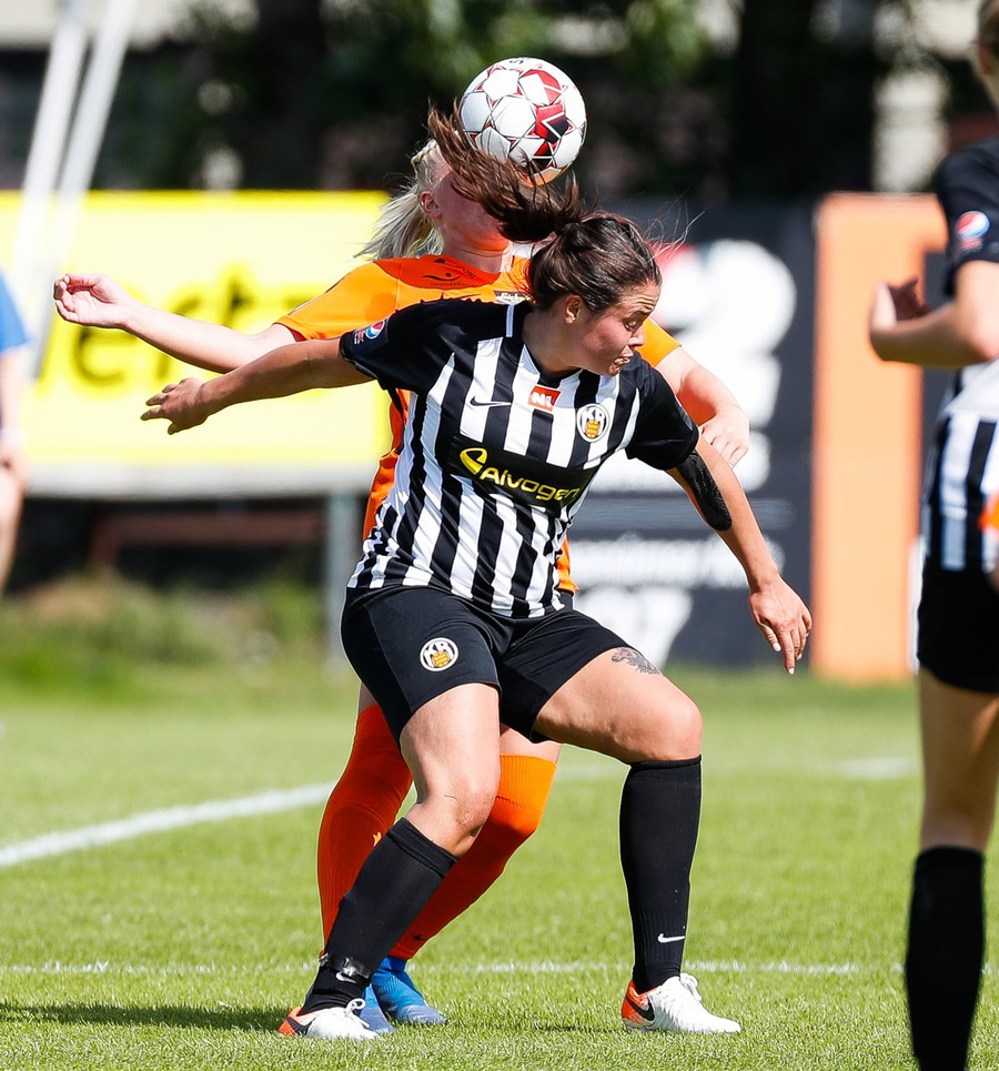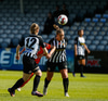 Gloria Douglas í fínasta færi en hún hittir boltann bara ekki almennilega með enninu og skallinn rennur aftur fyrir markið!