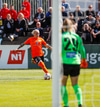 Guðmunda vill fá víti þegar hún nær skalla á markið!