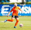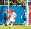Gloria er búin að vera frábær í dag! Hún á núna skalla eftir auakspyrnu sem fer beint á Bryndísi í markinu.