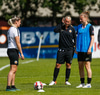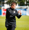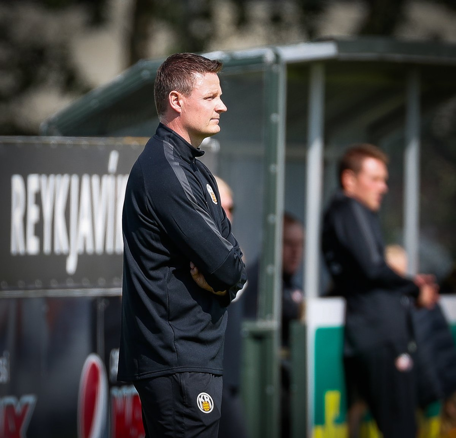 Ég ræddi aðeins við Donna meðan hann spókaði sig í sólinni út á velli áðan. Hann býst við erfiðum leikog hrósaði til að mynda Gloriu Douglas hjá KR og sagði hana virkilega góðan leikmann.