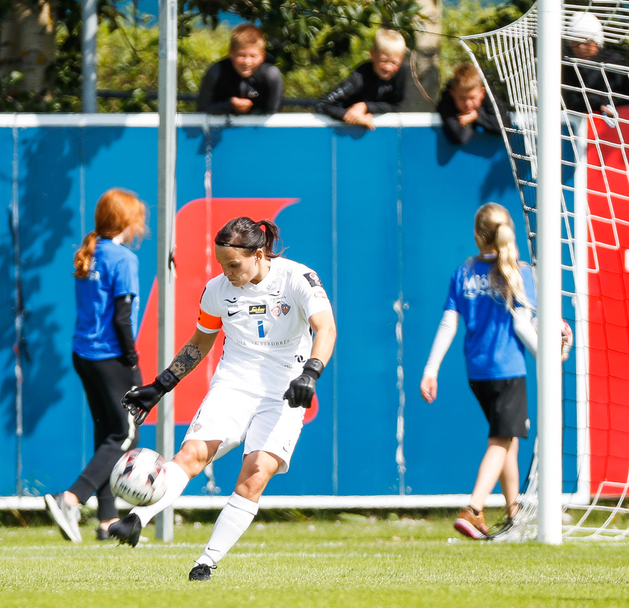 Ingibjörg er búin að vera öryggið uppmálað í markinu í fyrri hálfleik og er að koma út í allar stungusendingar og hirða þær!