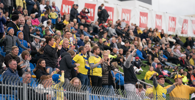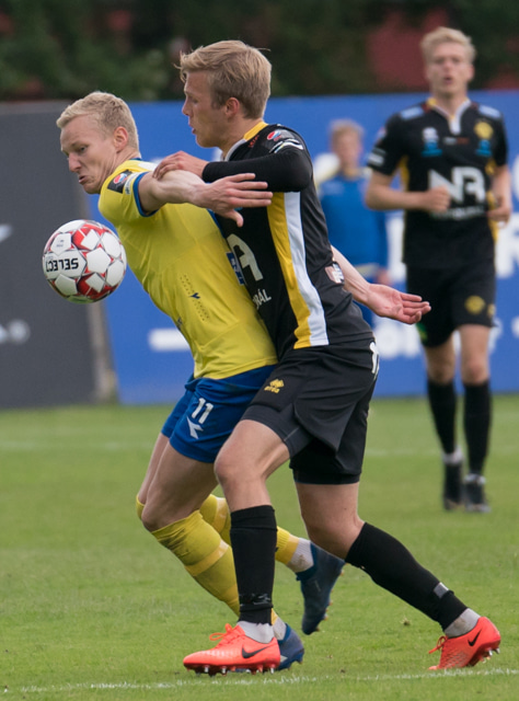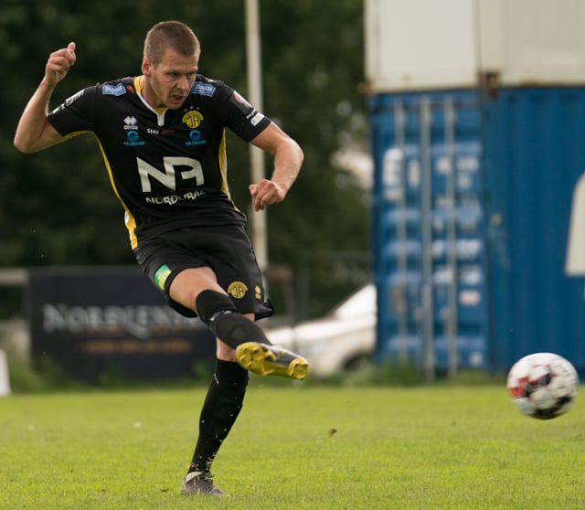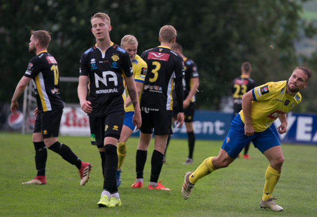 Spyrnan er of nálægt Árna Snæ sem að nær að kýla boltann í burtu. Hinum meginn geysist Tryggvi upp og á sendingu út á Bjarka Stein en Hrannar kemst fyrir skot hans.