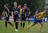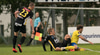 Lendir í samstuði við Torfa og er vægast sagt mjög ósáttur við þetta spjald. Torfi liggur eftir á vellinum.