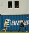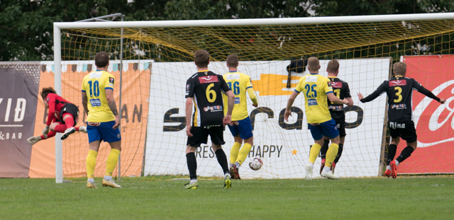 Markaskorari Skagamanna haltrar hér útaf.