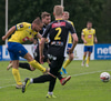 Almarr reynir hér stungusendingu á Hrannar en hún er of löng og fer aftur fyrir endamörk. KA menn aðeins meira með boltann núna en ná engan vegin að skapa sér opin færi.
