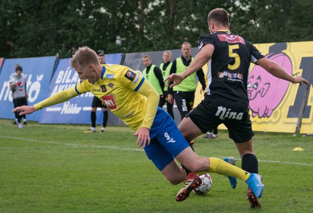 Stöðvar Elfar sem að er að hlaupa í skyndisókn.