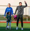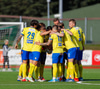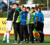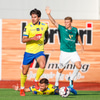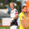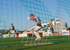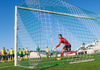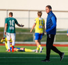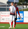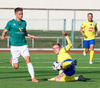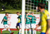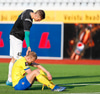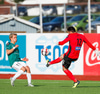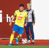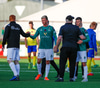 Grímsi tekur aukaspyrnuna en Villar hleypur fyrir skotið og fær boltann í bakið og yfir við mjög litla hrifningu Grímsa.