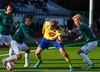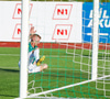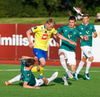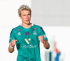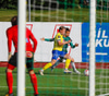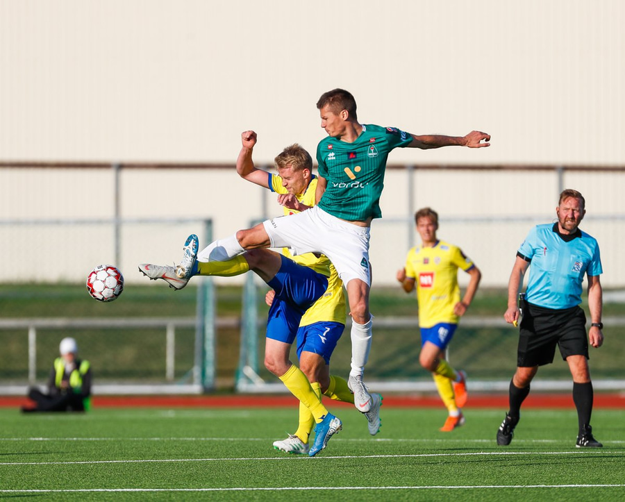 Alfons með fyrirgjöf á fjær sem Mikkelsen skallar beint á Jajalo.