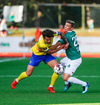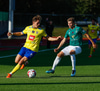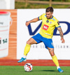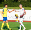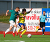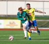 Alexander of seinn í tæklingu á Grímsa og fær réttilega gula spjaldið.