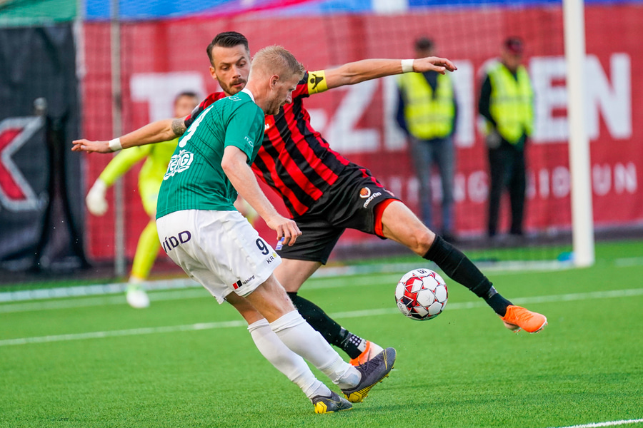 Kom sér í gegnum vörn Blika og var einn á móti Gunnleifi, reyndi að komast framhjá gamla manninum en hann náði að fálma hendi í knöttinn!