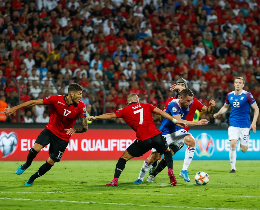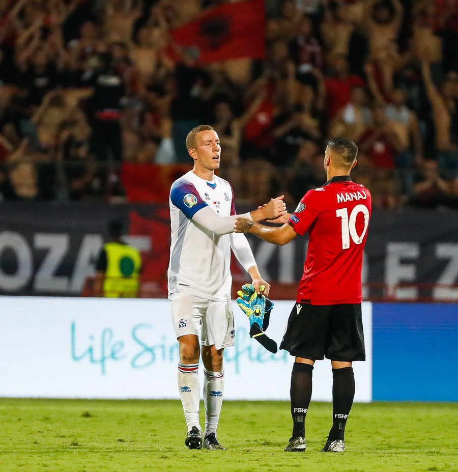 We play Albania today in the @UEFAEURO qualifiers at Elbasan Arena!#fyririsland pic.twitter.com/MzNZ9g72oh