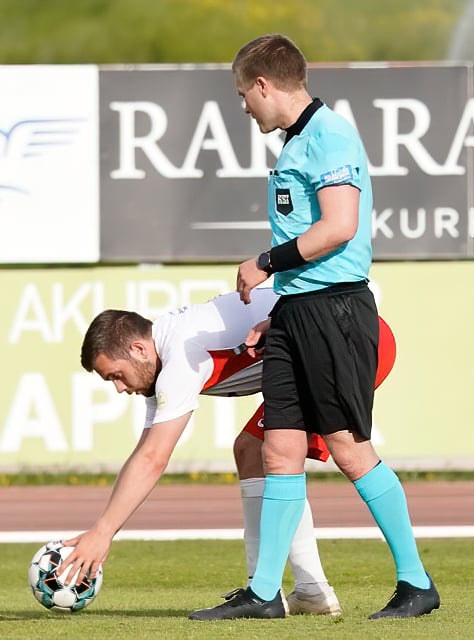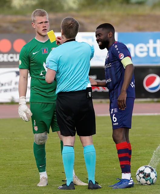 Orri rífur í Túfa. Brot dæmt og hann sleppur með gula spjaldið en fær tiltalið góða, síðasti séns.