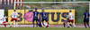 Liðin ganga inn á völlinn. Þórsarar leika í hvítum treyjum og rauðum stuttbuxum. Vestri leikur í dökkbláu.