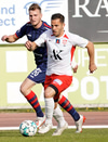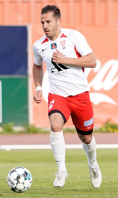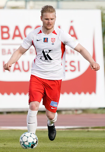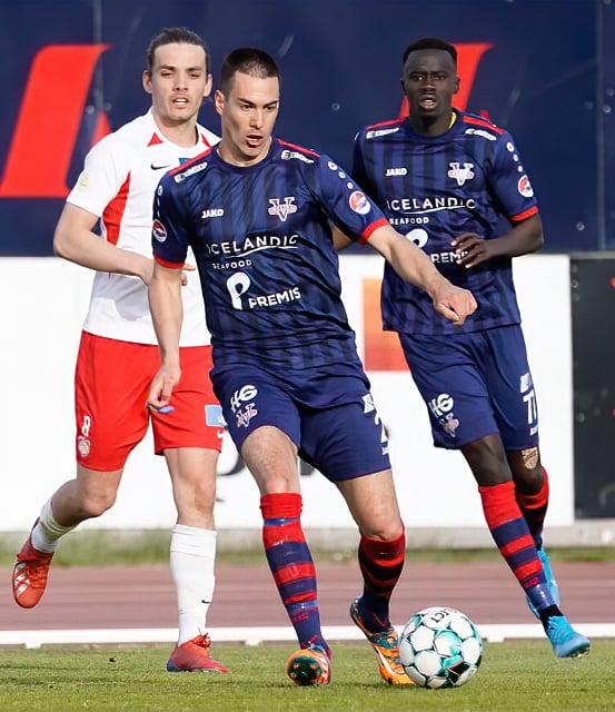 Aron reynir að finna Alvaro sem ýtir í varnarmann og réttilega dæmd aukaspyrna.
