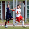 Nacho með góðan sprett en Sveinn Elías kemur til bjargar með tveimur tæklingum eftir að boltinn berst á Fall.