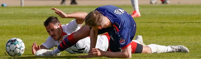 Jónas vinnur aukaspyrnu, Viktor dæmdur brotlegur. Aron tekur aukaspyrnuna. Boltinn er hátt upp á vellinum úti vinstra megin.