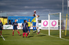 Gróttumenn raða sér á marklínuna fyrir hornið. Áhugaverð nálgun en boltinn svífur yfir pakkann.