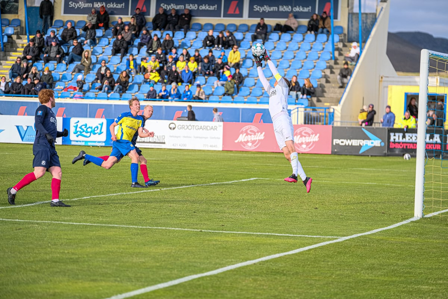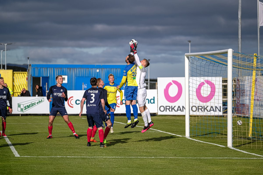 Fjölnir með fínt hlaup upp hægri sem endar með hjólhest frá Örvari en það er enginn hætta, fær samt töffaraprik í kladdan fyrir þetta.