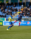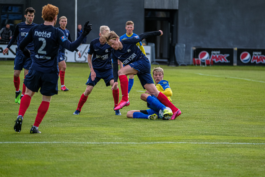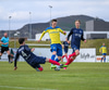 Kristófer Orri með fallegan bolta á milli miðvarðana þar sem Axel Sigurðar kemur á ferðinni og er að því virðist togaður niður en Einar Ingi ekki sannfærður og dæmir ekkert.