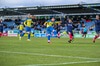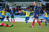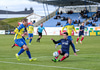 Fjölnir spilar í sínum hefðbundu gulu búningum á meðan Grótta spilar í sínum hvítu varabúningum.