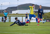 Valtýr Már grimmur í pressunni og hirðir boltan af Guðmundi Karli og leggur hann á Pétur Theódór sem stillir sér upp rétt fyrir utan teig og á skot stöngin inn!