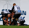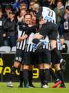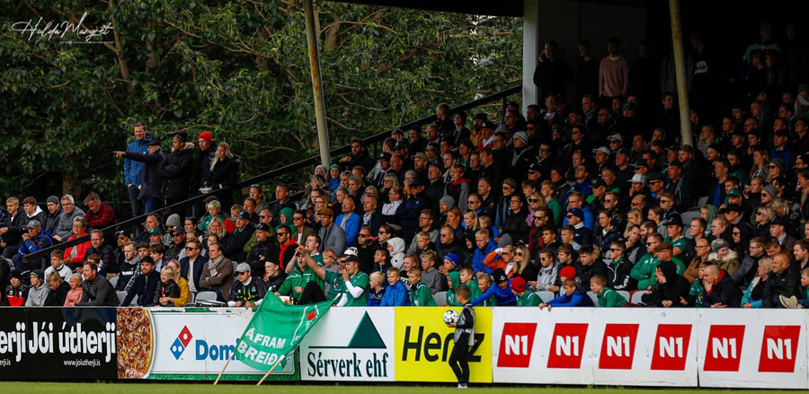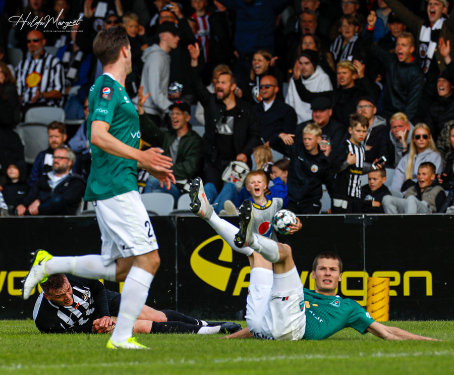 Blikar garga í stúkunni en Pálmi Rafn tekur "hárþurrkuna" á Danann í jörðinni. Áfram gakk!