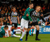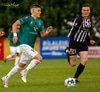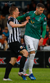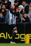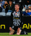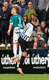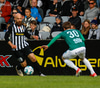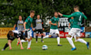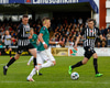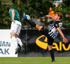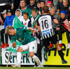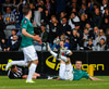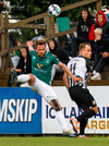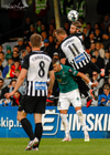 Vinnur sér skotfæri af harðfylgi og neglir á markið en Beitir slær í horn...sem ekkert verður úr.