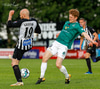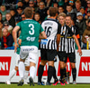 Enn kemur hættan frá hægri, Atli með sendingu inn í markteiginn þar sem Stefán er og skallar en boltinn fer framhjá á fjær. Stefán er mjög ósáttur, segir Damir hafa ýtt við sér.