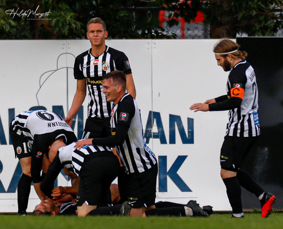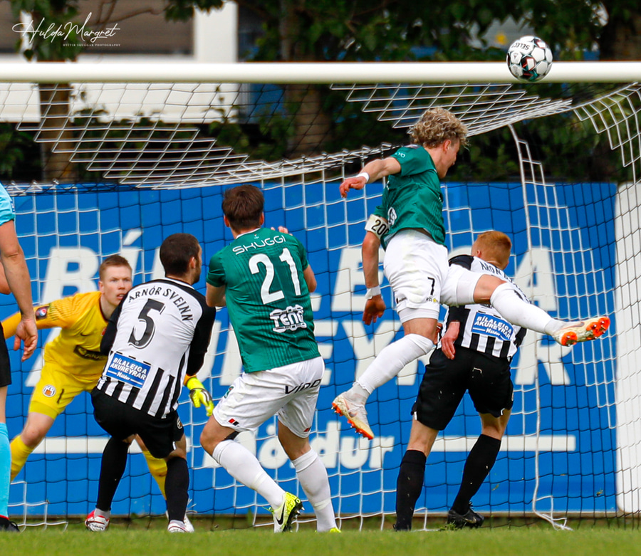 Frábær aukaspyrna frá hægri inn á vítateigslínu fjær. Fyrirliðinn Höskuldur stekkur hæst og heldur upp á leik nr. 150 fyrir félagið með geggjuðum skalla út við stöng.
