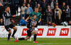 Fær aðhlaup að teignum og flamberar þennan á markið en yfir á fjær.