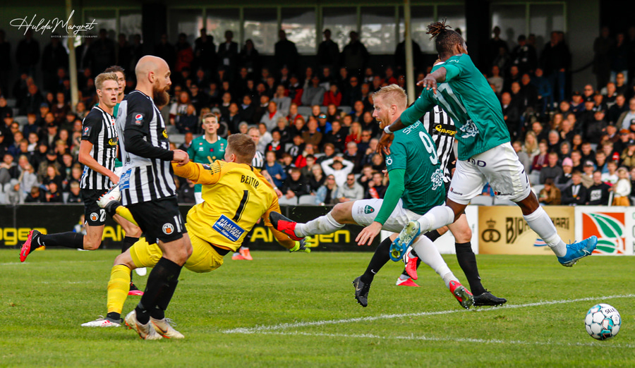 Höskuldur kemst upp vinstra megin og neglir boltann inn í teig með jörðinni þar sem Mikkelsen stýrir honum á fjær. Boltinn lendir í innanverðri stönginni og síðan í fegið fang Beitis!