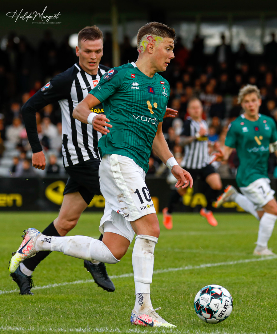 Viktor Karl kemst framhjá Kristni og í skotfæri en Aron hreinsar í innkast.