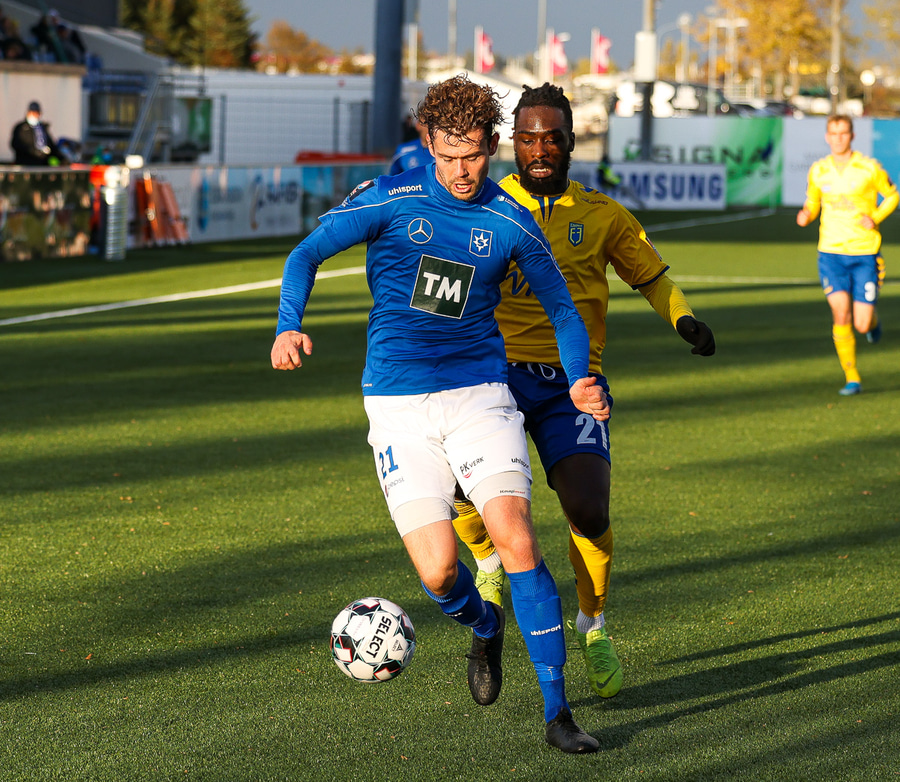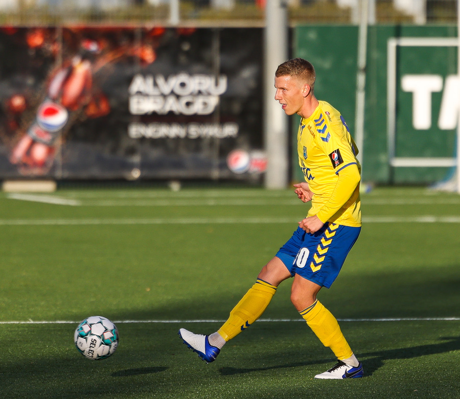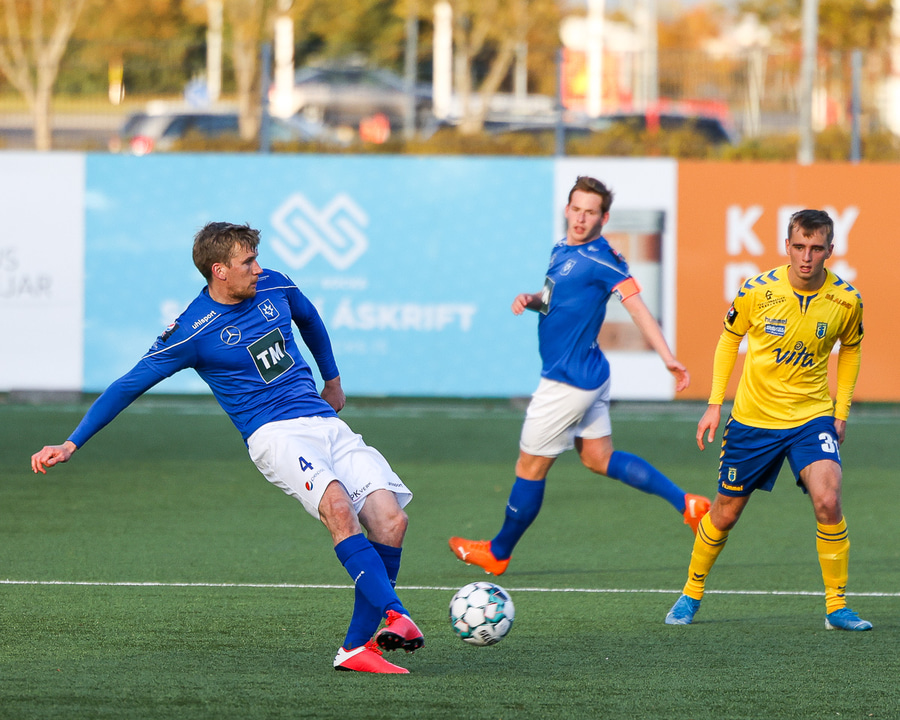 Síðasta sending leiksins er á fjær þar sem Björn Berg er í boltanum en hann afturfyrir.