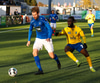 Jóhann Árni fær boltann við miðjuna og brunar upp, kemur sér í gott skotfæri á vinstri en setur boltann framhjá.