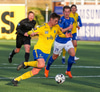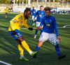 Kristófer með spyrnuna á fjær, Sölvi nær skallanum en Sigurjón ver!!!