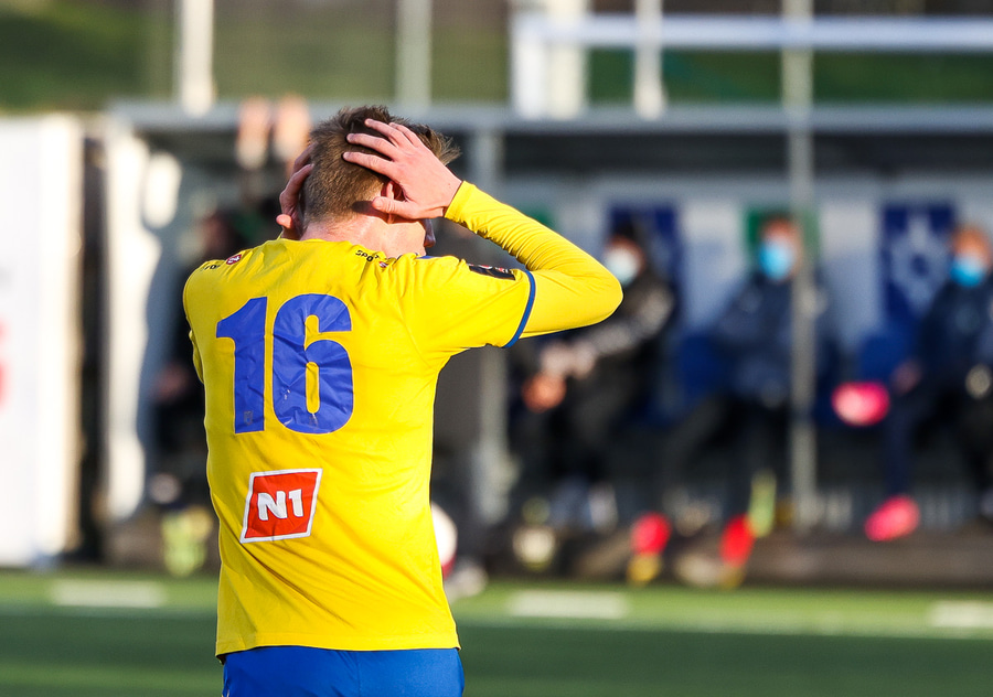 Sölvi Snær brunar upp, leggur boltann út á Emil sem sendir fyrir og Þorsteinn Már skallar yfir!