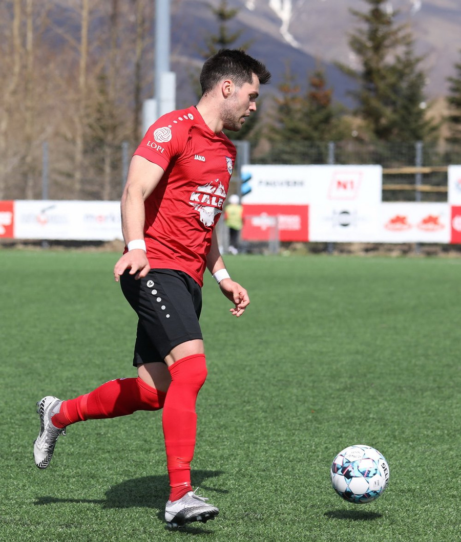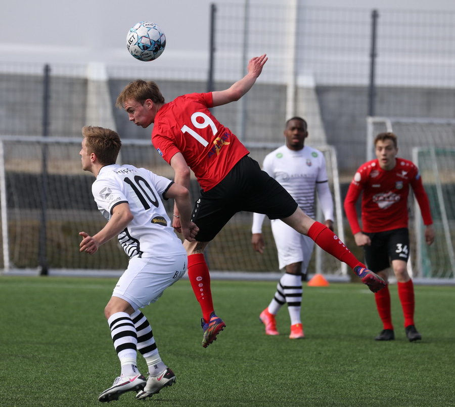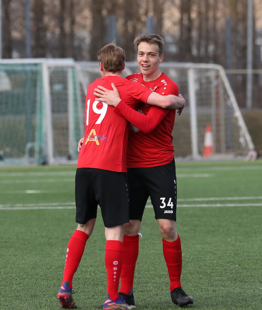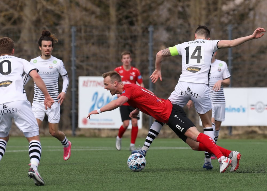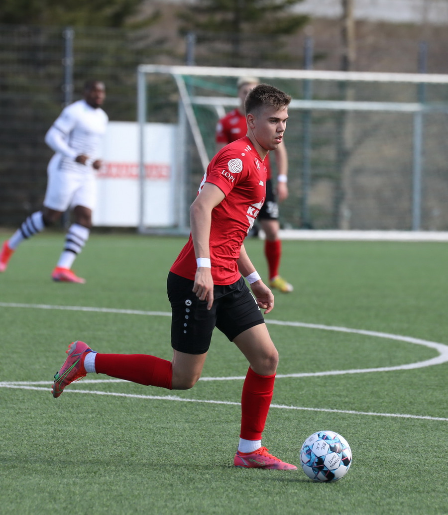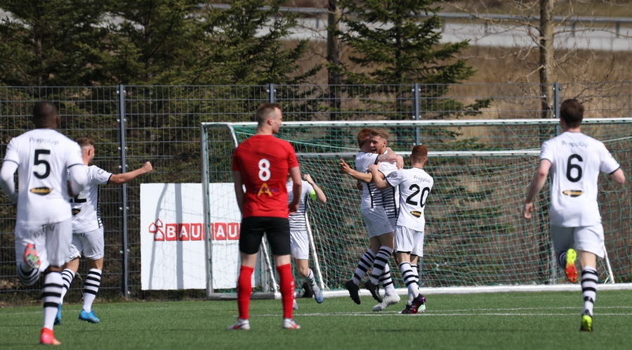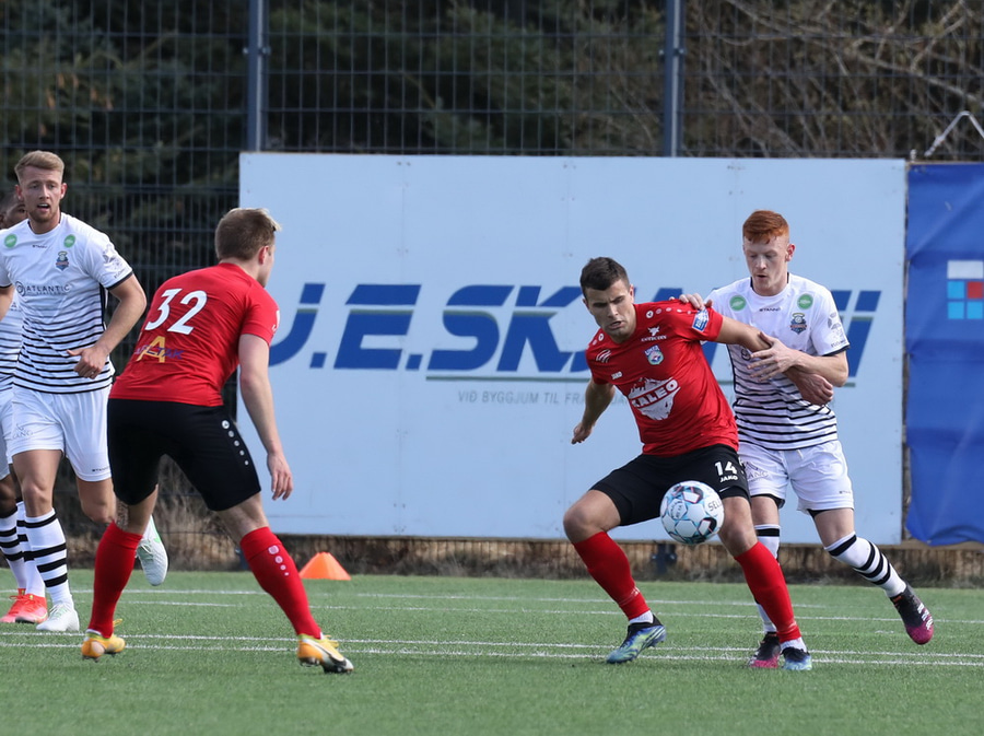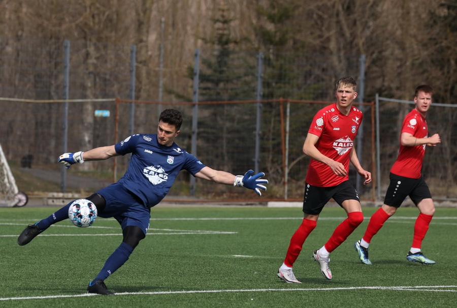 Afturelding spila í rauðu með flotta Kaleo merkinu á bolnum og meðan spila Kórdrengir í hvítu.