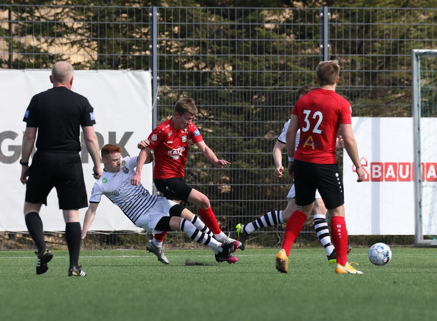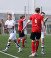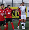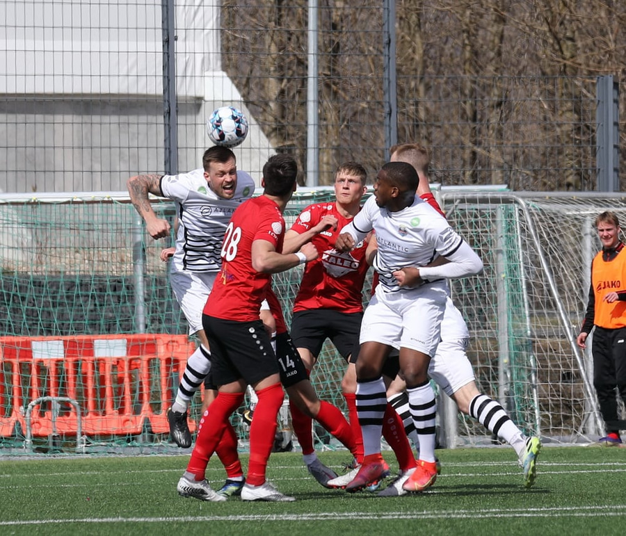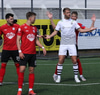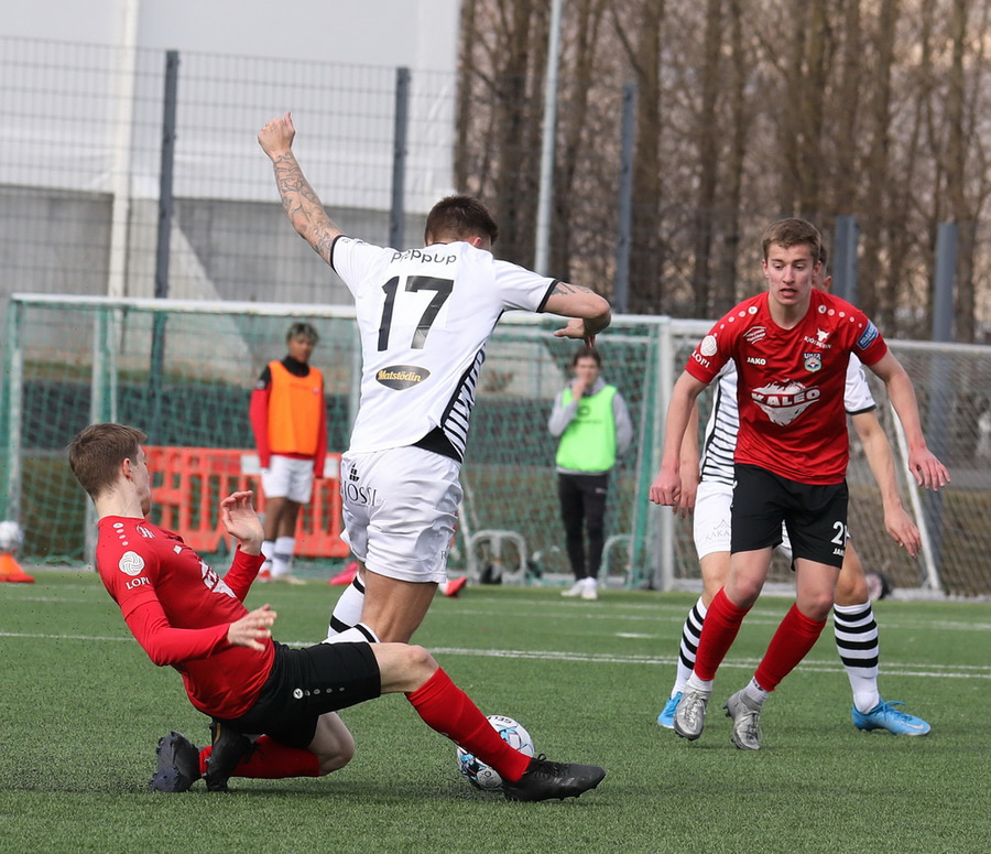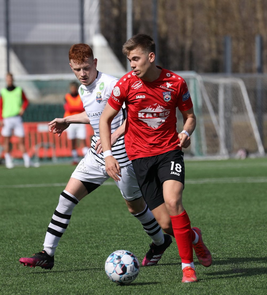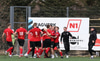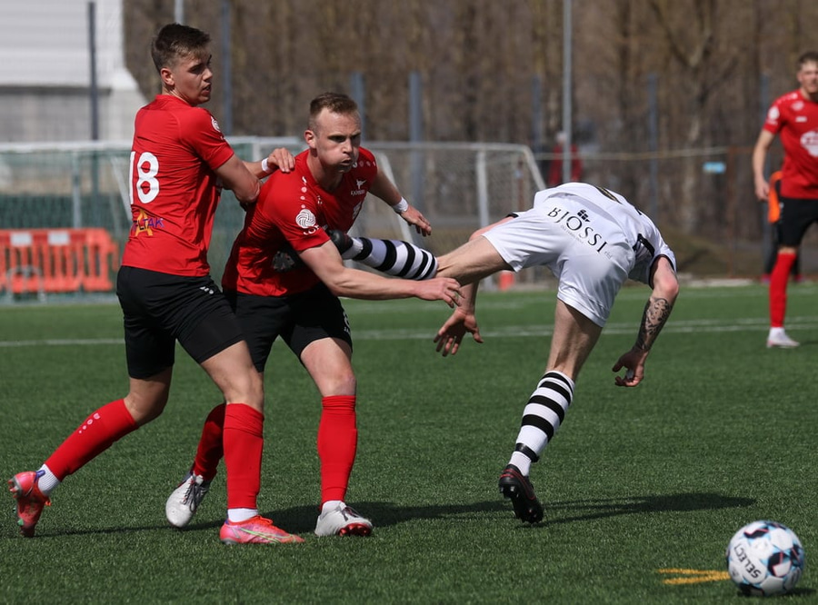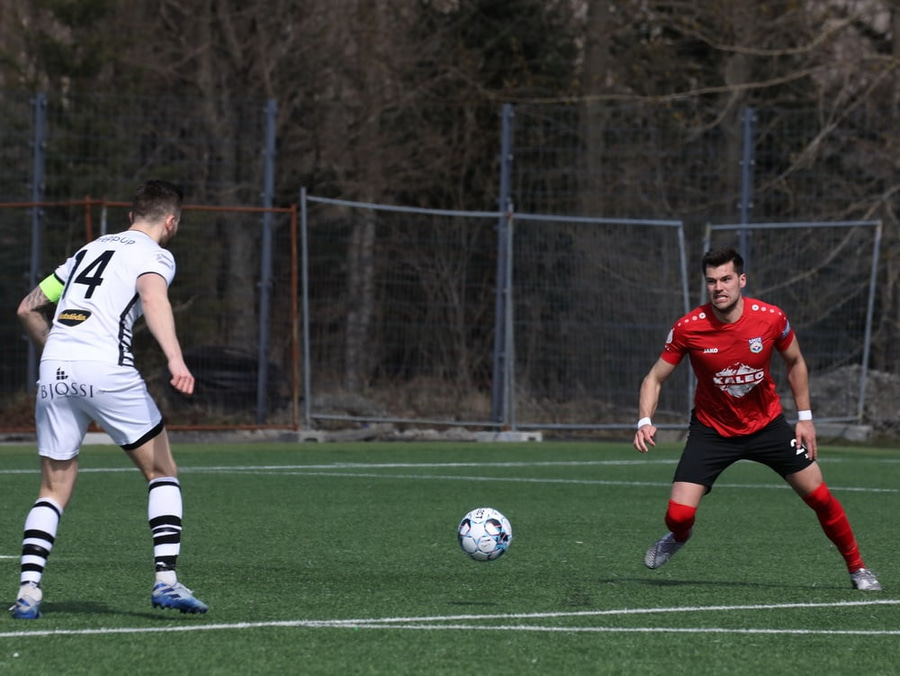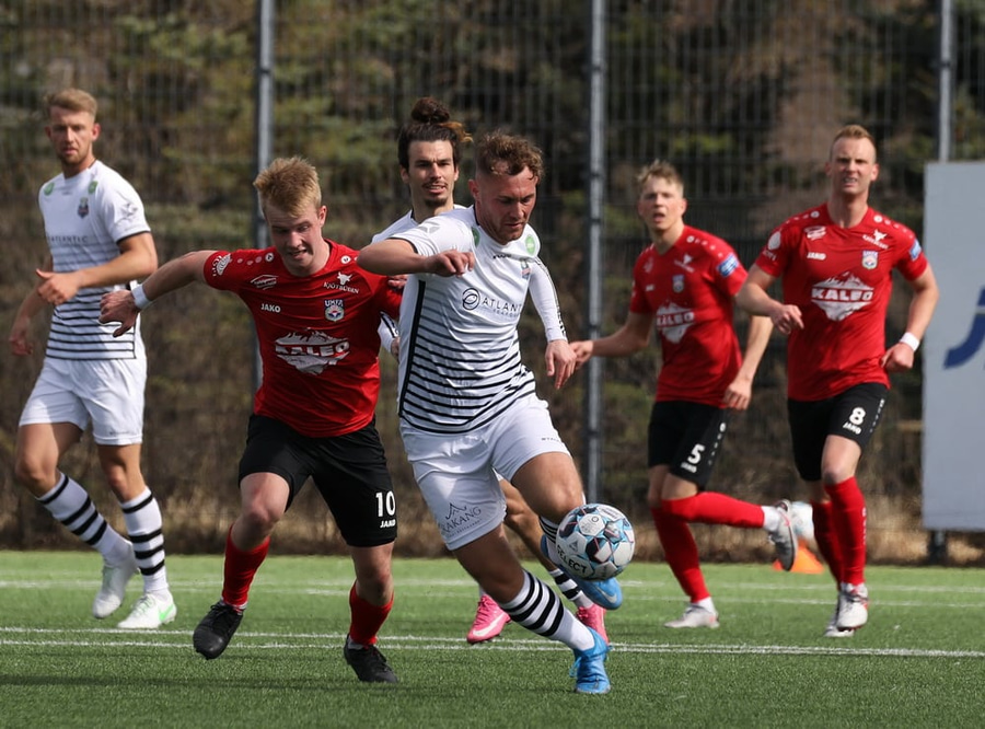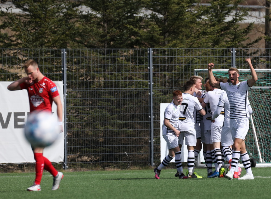 Afturelding spila í rauðu með flotta Kaleo merkinu á bolnum og meðan spila Kórdrengir í hvítu.