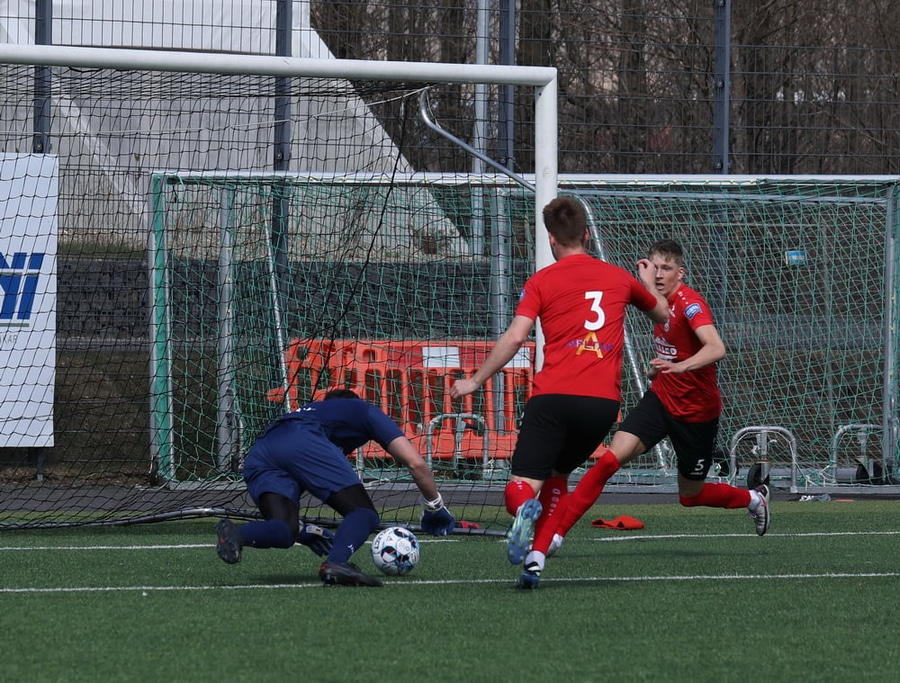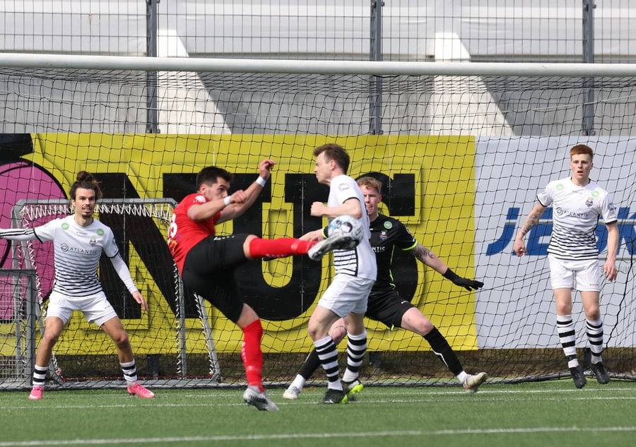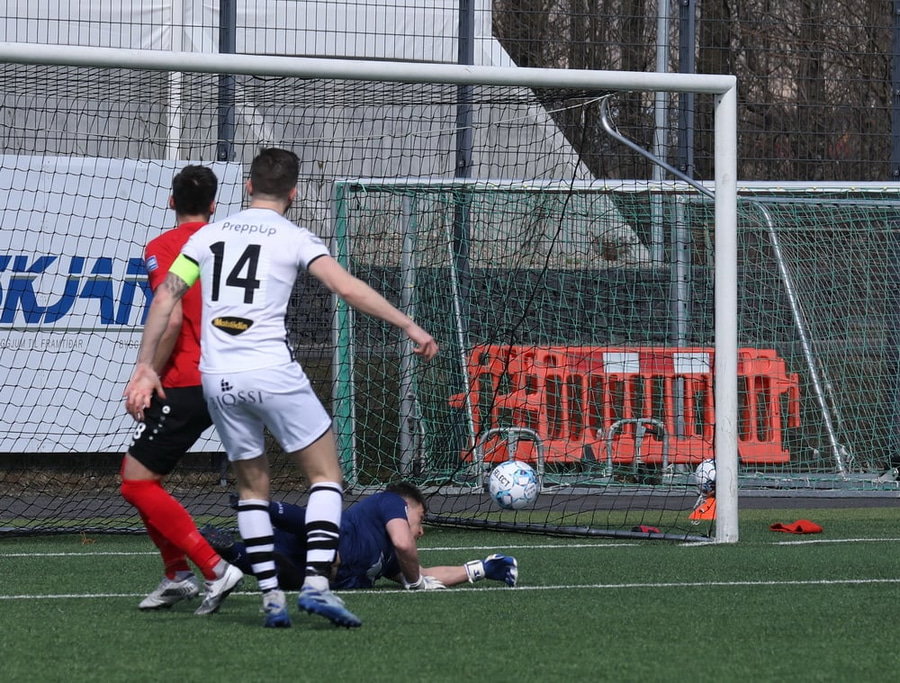 Flott spil á milli Alberts Brynjars og Daníel Gylfa teignum, Connor bíður svo eftir boltanum hinum megin í teignum með engann mann í sér og skýtur í opið mark.