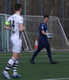 Gult á Danna fyrir að tækla markvörðin í miðju hraðahlaupi.