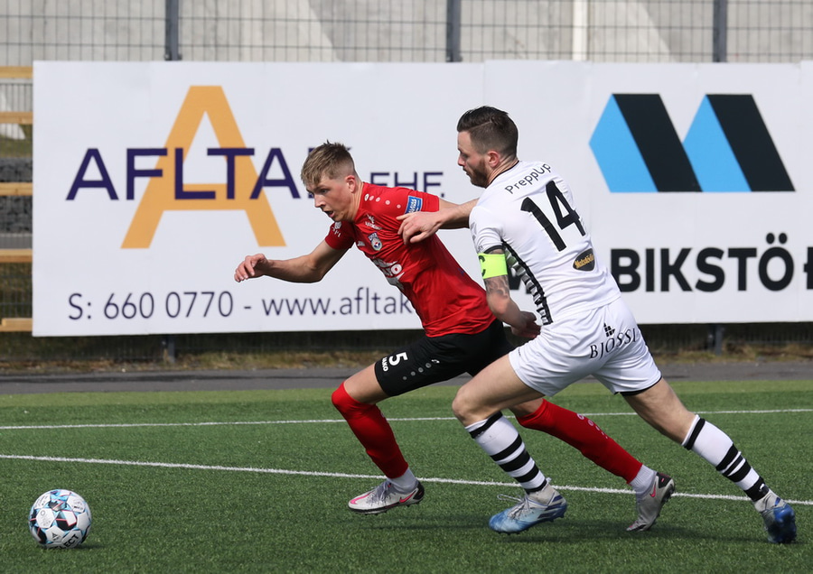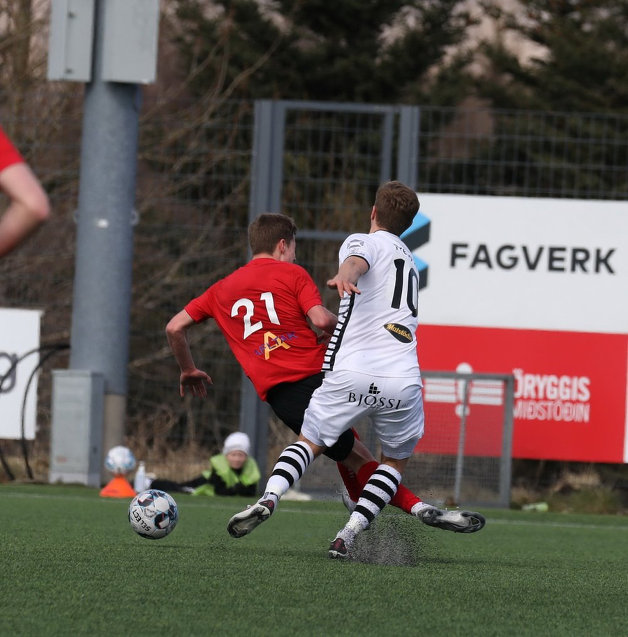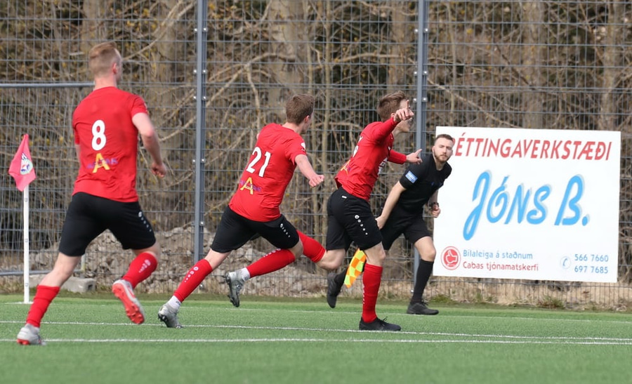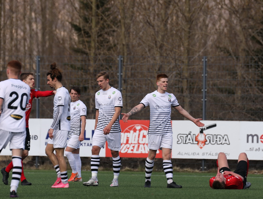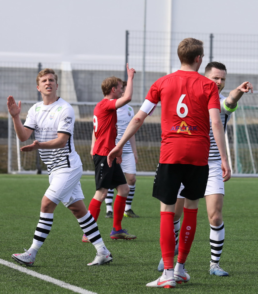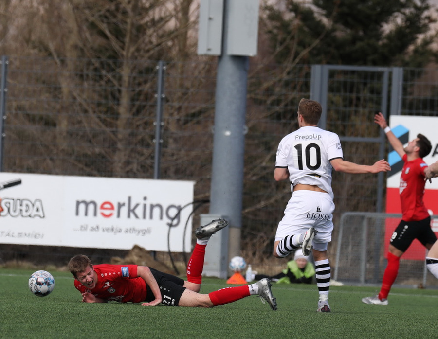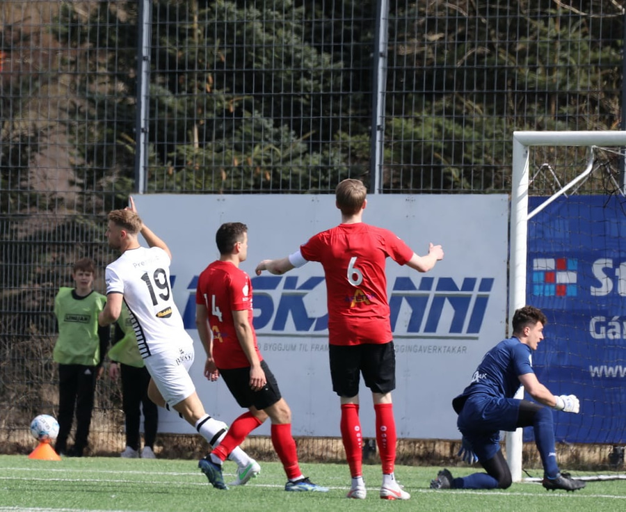 Afturelding vinnur hornspyrnu vinstra megin vallarinnar eftir geggjað hlaup hjá Valgeir Árna.