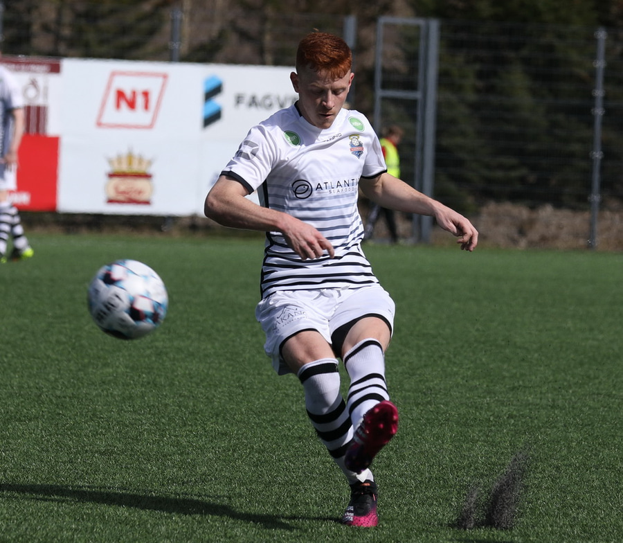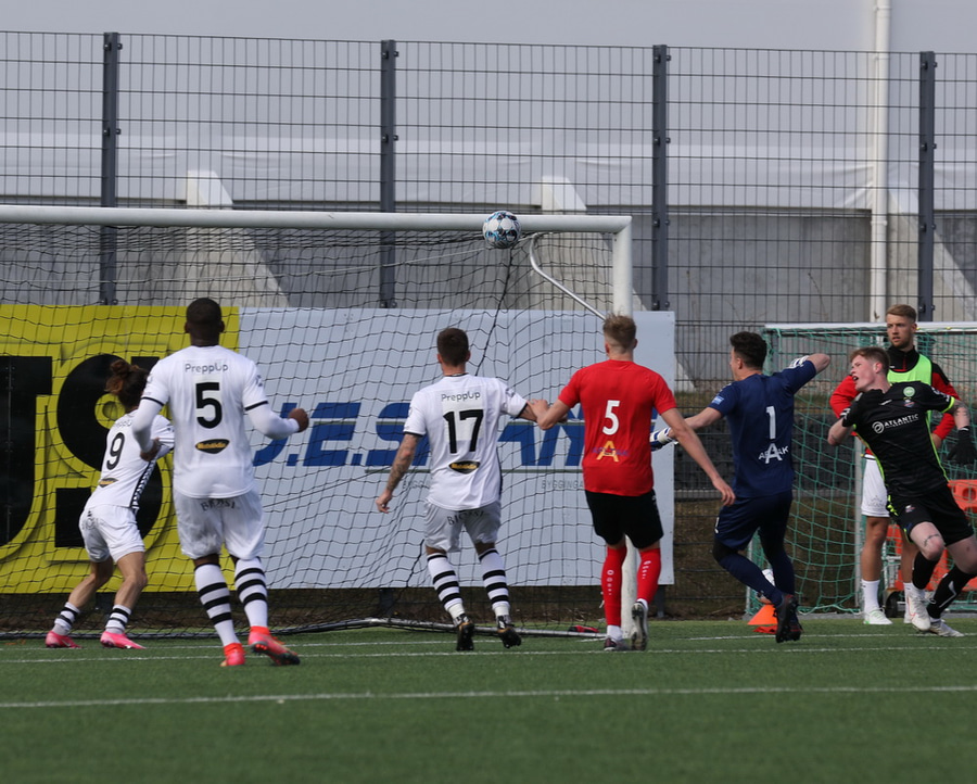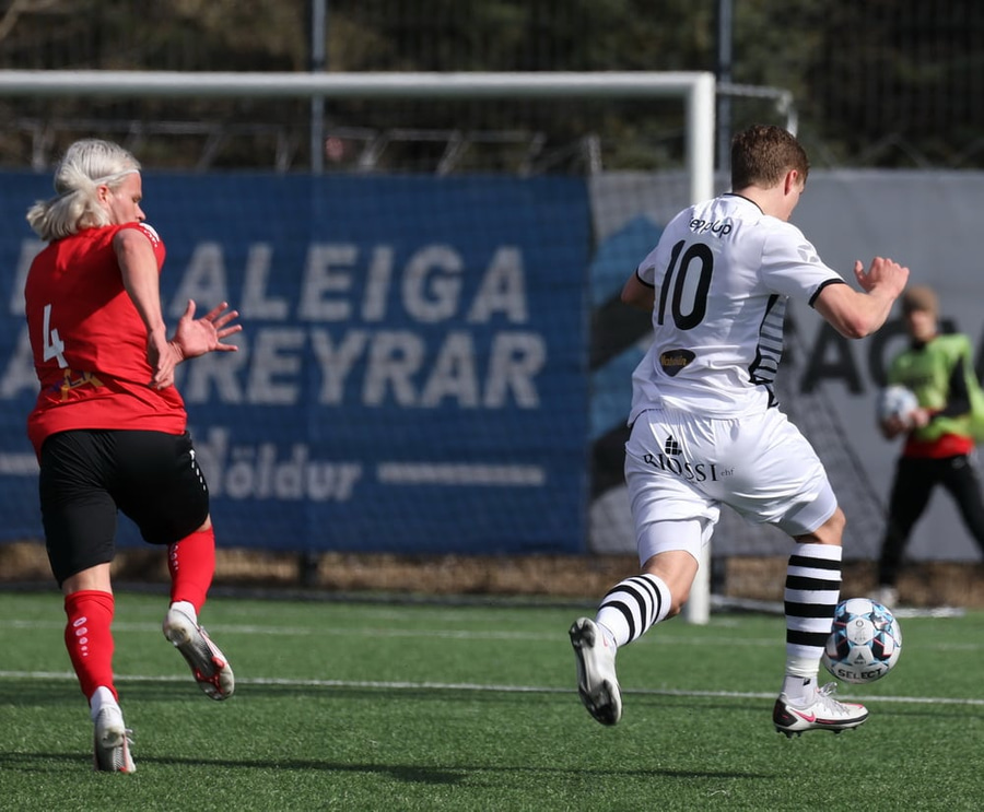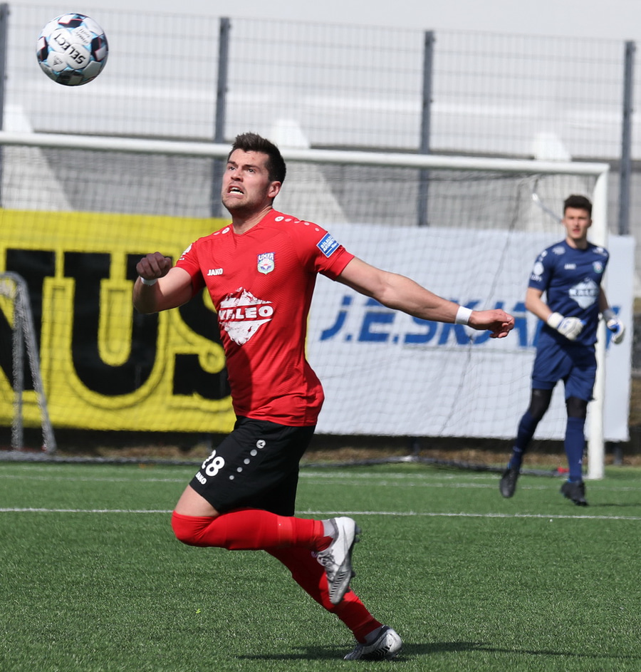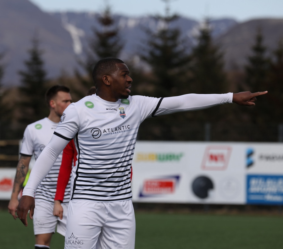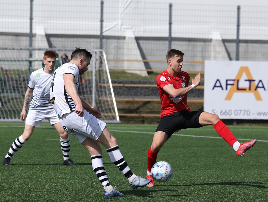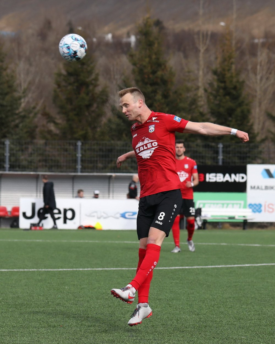 Afturelding vinnur hornspyrnu vinstra megin vallarinnar eftir geggjað hlaup hjá Valgeir Árna.